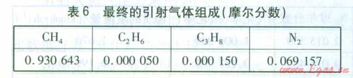 ①最終引射氣體組成及相關數據 最終引射氣體組成見表6。