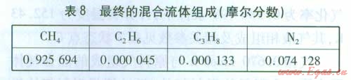 1.000 kmol/h的天然氣,0.670 kmol/h的回流復熱氣及0.224 kmo]/h的被引射氣,混合得1.894 kmol/h混合流體,經計算,其組成及相關參數見表5狀態點C。