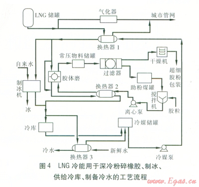 針對上述特點,遠期擬開展LNG衛星站冷能用于深冷粉碎橡膠、制冰、中小型低溫冷庫、發電的研究以及LNG的梯級利用等。