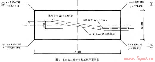 長輸管道定向鉆穿越大型河流時,由于定向鉆穿越長度有限,定向鉆施工采用連續兩次對穿或多次對穿的方法,為保證管道安全運行,連頭點管道埋深在河道沖刷線以下,但這樣會造成連頭作業坑開挖困難。根據現場實際勘察,結合我們以往的施工經驗,經過反復研究論證,制訂了連頭作業坑開挖基坑支護施工方案,采用降坡明溝開挖、降水井、土釘墻、鋼板樁、管道出入口旋噴樁加固和封底等措施,解決了大口徑長輸管道連續兩次或多次定向鉆穿越大型河流中間連頭基坑開挖的施工難題,為以后類似條件的施工積累了經驗。
