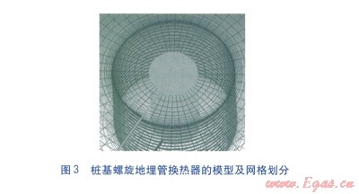 在數值計算過程中,采用兩種設計工況:定加熱負荷、定入口水溫。定加熱負荷:加熱負荷設定為4kW,地埋管換熱器內水的流速分別取0.6、0