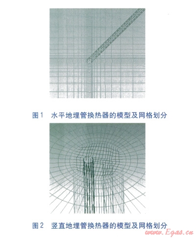 采用ANSYS ICEM CFD進行建模,模型建立時,不對模型進行簡化,完全根據實際情況進行建模。采用ANSYS CFX進行求解,選擇非穩(wěn)態(tài)計算,管內傳熱介質流動選擇K-Epsilon模型,動量方程與能量方程耦合求解。水平地埋管換熱器布置成直管形式,地埋管長度為l00m。由于豎直地埋管換熱器的研究基于線熱源,因此將豎直地埋管換熱器的鉆孔深度設定為l