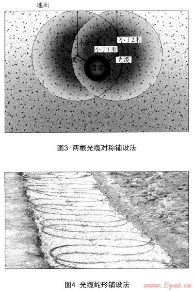受當前儀器設備精度所限,只能分析出光纖橫截面為中心半徑2m內振動聲音信號。即,光纜有效監測半徑只有2m,所以,管道必須完全處在光纜為中心2m包絡線之內,否則將有部分管體受不到有效保護(如圖2)。