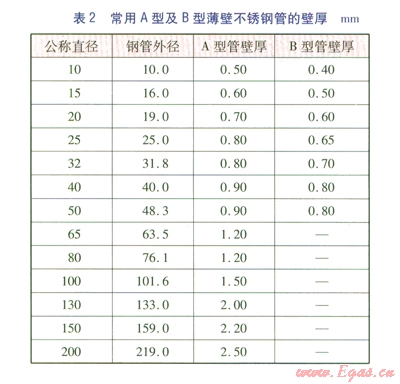 CJJ 94-2009《城鎮燃氣室內工程施工與質量驗收規范》對薄壁不銹鋼管及其管件的使用有如下規定:①當采用薄壁不銹鋼管時,其厚度不應小于