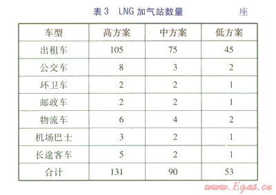 根據年用氣量估算了各類LNG加氣站的數量,見表3。