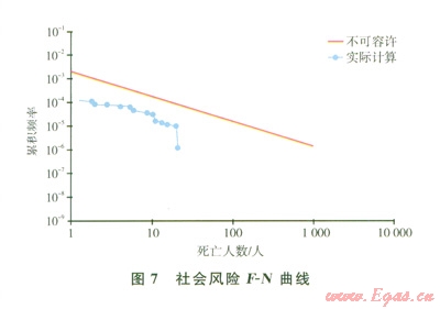 目前國內除《危險化學品重大危險源監督管理暫行規定》確定了重大危險源對人口密集場所、學校等敏感目標的個體風險標準值以及重大危險源的社會風險F-N曲線外,還沒有其他適用于偏遠地區、人居分散條件下含硫天然氣開發的個人風險標準值可供參考。為此,研究英國、荷蘭等國家風險標準值制訂的歷史、背景等資料后[4],分析我國近10年采掘業事故傷亡率、公眾意外死亡風險以及石油天然氣行業傷亡情況,提出了員工個人風險(1.5×10-3)、公眾個人風險(0.8×10-4)以及社會風險的基準值l.4×10-3 (N=1),斜率為-1。風險可接受標準的最終確定應由相應的風險承擔方與風險制造方在客觀風險基礎上平等協商決定。