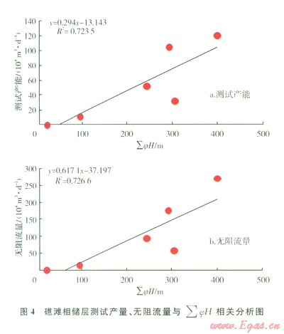 3)礁灘相氣層孔隙度和有效厚度的乘積累加能直接反映出儲層的產能狀況,這將為礁灘相儲層快速便捷地進行產能預測提供技術依據。