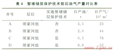 針對研究的四川油氣田某區塊須家河組儲層,須家河組儲層段中的2口開發井實施多級架橋暫堵儲層保護技術前后的油氣產量對比(表4)。實施多級架橋暫堵儲層技術的2口開發井,其油氣產量得到明顯提高,充分說明多級架橋暫堵技術對值層具有良好的保護作用。