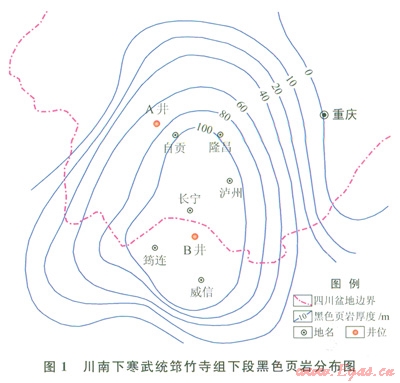 本文以川南筇竹寺組A井、B井兩口鉆井資料為基礎(圖1),借鑒龍馬溪組頁巖儲集空間定量表征的方法和思路[11],應用地質統計分析法、高精度電子顯微鏡、地球物理測井等技術,依據頁巖巖礦、地化、物性等實驗測試數據,對筇竹寺組黑色頁巖(TOC>1%,下同)基質孔隙度構成和裂縫發育狀況進行了定量分析和評價,并通過與龍馬溪組頁巖納米級孔隙系統的對比分析,對筇竹寺組頁巖基質孔隙度的影響因素進行了探索研究,以期為深化頁巖氣富集機理研究提供地質依據。