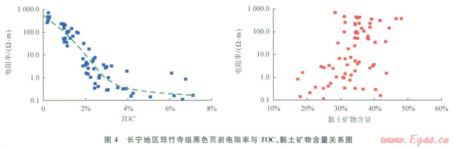 至于筇竹寺組頁巖有機質碳化到何種程度,目前僅根據低一超低電阻特征還無法進行定量計算,但根據電阻率與有機質豐度的相關性以及電阻率值大小可以對有機質碳化強弱進行定性判斷。