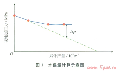 水侵量可根據視地層壓力與累計產氣量的關系曲線進行計算(圖1)。