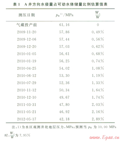 根據(jù)水區(qū)觀測(cè)井監(jiān)測(cè)的地層壓力下降數(shù)據(jù),采用式(2)或式(3)能計(jì)算侵人氣藏水量與水區(qū)累積排水量之和在可動(dòng)水體儲(chǔ)量中所占的比例;根據(jù)原始地層壓力與預(yù)計(jì)廢棄地層壓力之間的差值,可估算極限水侵量所占比例。由極限水侵量比例與目前水侵量比例的差值,結(jié)合氣藏產(chǎn)水狀況,能大致預(yù)判后續(xù)水侵影響程度。上述分析結(jié)果能為確定優(yōu)化治水對(duì)策、提高治水的針對(duì)性和氣藏開發(fā)效益提供技術(shù)參考。