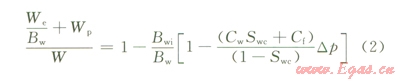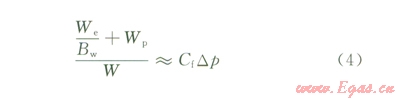 式中We為侵人氣藏的水量,l04m3Wp為水區(qū)累積排水量,l04m3W為可動(dòng)水體儲(chǔ)量,l04m3Bwi為原始地層壓力條件下地層水體積系數(shù);Bw為研究所關(guān)注時(shí)刻對(duì)應(yīng)地層壓力條件下水的體積系數(shù);Cw為從原始狀態(tài)到關(guān)注時(shí)刻地層壓力下降區(qū)間內(nèi)水的平均壓縮系數(shù),Mpa-1Cf為儲(chǔ)層巖石有效壓縮系數(shù),Mpa-1Swc為束縛水飽和度,無因次;Dp為地層壓力變化,MPa