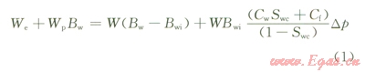 考慮水區(qū)能流動(dòng)的水體彈性膨脹量、侵入氣藏水量、某些情況下為保護(hù)鄰近生產(chǎn)井而在水區(qū)排水泄壓的累積產(chǎn)水量、宏觀均勻分布的小孔隙中束縛水膨脹占據(jù)的原可動(dòng)水體空間,以及地層壓力下降后水層空隙的壓縮效應(yīng),有以下關(guān)系: