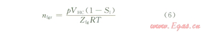 經歷開采過程中水體與束縛水的膨脹以及地層水的產出之后,剩余水溶氣摩爾量為: