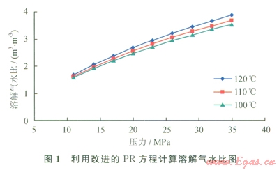 利用改進的PR方程結合相平衡模型計算不同溫度、壓力條件下的溶解氣水比(圖1)。