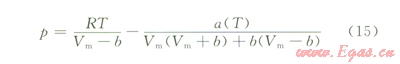 天然氣在地層水中的溶解度受到溫度、壓力、地層水礦化度以及天然氣組成等因素的影響[7-9]。由于天然氣在水中的溶解屬氣液平衡問題,溶解度除通過實驗測定外,也可根據相平衡原理進行計算。對于地層條件下的高壓相平衡問題,可采用狀態方程法。廣泛使用的PR狀態方程[10]形式為: