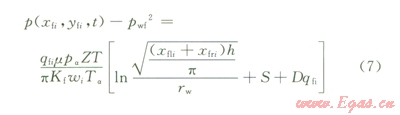 對于高產氣井,地層和裂縫均可能產生高速非達西流動,即紊流效應。當地層壓力不太高且生產壓差不是很大的時候,忽略地層紊流效應,認為高速非達西流動只發生于裂縫內。那么,高速非達兩流動產生的附加壓降也主要發生在裂縫內,類似于表皮效應的處理思路,可以用流量相關表皮系數(Dqfi)來表示,則可將式(6)改為: