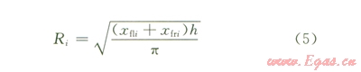 根據面積相等(xfli+xfri)h=Ri2,可得: