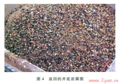 本次Æ215.9mm垂直井眼段的鉆進試驗,按鉆井泵排量為18.5L/s時計算環空返速就達到36.57m/min,實際鉆井中鉆井泵排量在17~20L/s,井眼清洗情況良好(圖4)。