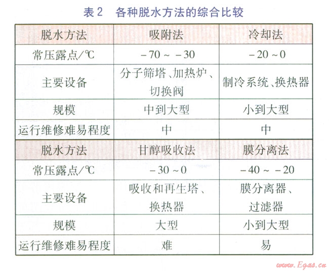 ① 對(duì)于大型天然氣液化廠的天然氣脫水脫硫醇單元,當(dāng)天然氣處理量較大時(shí),可先采用冷卻法脫除原料氣中大量水分,并合理確定原料氣冷卻溫度,避免天然氣水合物的形成。然后采用吸附法進(jìn)行深度脫水。