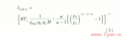熱泵制熱系數計算式為: