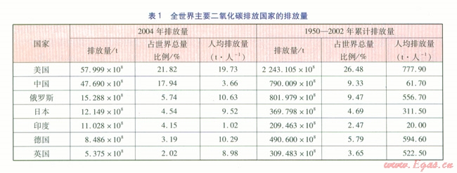 隨著國民經濟的發展和人民生活水平的提高,供熱消耗的能源不斷增加,排放的二氧化碳量越來越多。全世界主要二氧化碳排放國家的排放量見表1[1]。由表1可知,美國2004年的排放量和l950-2002年的累計排放量均占世界第一位;我國2004年的二氧化碳排放量為世界第二位,1950-2002年的累計排放量為世界第三位;7個國家二氧化碳排放量合計約占全世界的60%。我國二氧化碳排放量增加速度加快,說明進入21世紀后,我國經濟發展速度加快,能源消耗增加,導致二氧化碳排放量增加,我國二氧化碳的減排壓力越來越大。如果按目前的經濟發展速度,我國的二氧化碳排放量不久將會超過美國,碳減排的任務非常艱巨。