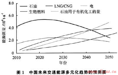 圖1是中國未來交通能源多元化趨勢(shì)的預(yù)測圖[1]。