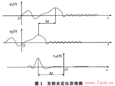 當管道發生泄漏,在管道首末端的音波傳感器檢測到2個音波泄漏的尖峰信號時,意味著泄漏音波信號到達了管道首末端,可用相關分析確定2個尖峰信號對應的時間差。因為泄漏發生時上下游泄漏音波信號波形相似,只不過有個時間差。因此移動一端的音波信號與另一端音波信號做相關分析時,一定會有1個極大值點,找到這個極大值點就找到了音波到達上下游的時間差。