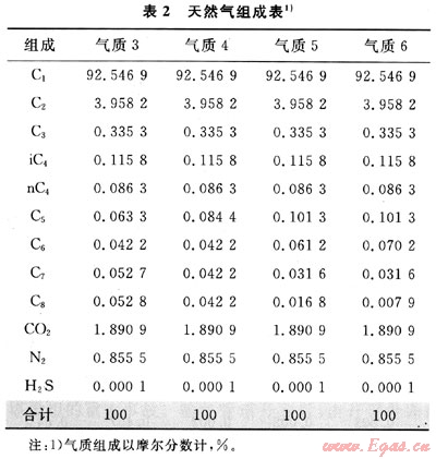 以4種不同組成的天然氣來分析滿足管道運行條件下的氣質組成對減壓波特性的影響,其組成如表2所示。