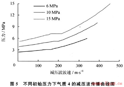 從圖5可以看出,在相同的初始溫度下,隨著初始壓力的降低,起始點的減壓波波速逐漸減小。當減壓波曲線出現“平臺”時,減壓波曲線的“平臺”隨著初始壓力的減小而降低,最終可能消失。