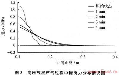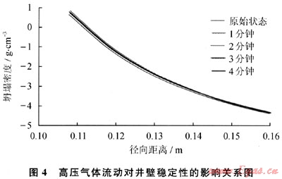 圖4給出了高壓氣體高速流動對產(chǎn)氣層井壁穩(wěn)定性的影響關(guān)系。