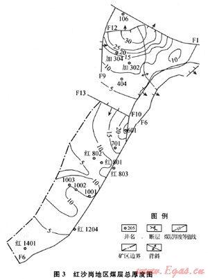 紅沙崗東部(F6)和西部(F4)邊界斷層為繼承性斷層,也有不同程度的成煤(同沉積斷層性質)和護煤作用。這些斷層的繼承性活動,控制或改造著含煤地層的展布方向,在構造相對穩定的區段內是保存煤層的有利部位(圖2)。