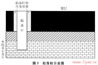 陷落柱對煤層以及煤層底板破壞程度較大,其周圍煤巖層中伴隨許多裂隙及小型斷層,成為溝通奧陶系石灰?guī)r溶裂隙水與煤層巷道的良好通道(圖5)。