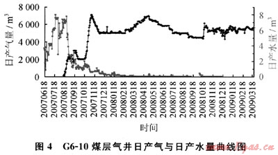 因此,在這一部位,含氣量和煤儲層的連通性達到一種較為理想的搭配,其煤層氣井的穩(wěn)定產(chǎn)氣量一般較好,多在4500m3/d左右,產(chǎn)水量也介于上述2種位置之間(圖4)。樊莊區(qū)塊內(nèi),G6-10、G7-11井等高產(chǎn)煤層氣井均在這種翼部位置。