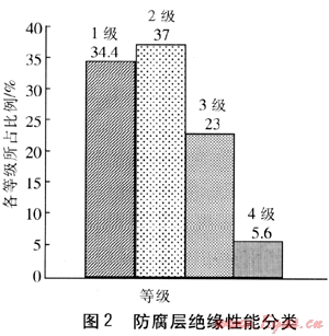 根據SY/T 5919—2009《埋地鋼質管道陰極保護技術管理規程》,防腐層技術等級劃分及采取的維修方式見表2。