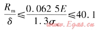 在計算極限狀態應力時,當管道最大軸向應力不超過極限狀態應力,錨固段的直管段就不會發生局部屈曲。管道的極限狀態應力與臨界徑厚比Rm/δ有關,當管徑確定,鋼管的壁厚越薄,越容易發生局部屈曲。管道最大軸向應力的極限狀態為: