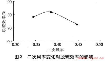 ③ 二次風率變化對脫硫效率的影響