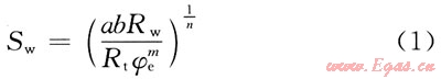 1942年,Archie根據(jù)前人和他本人的研究數(shù)據(jù),得出純砂巖在地層水礦化不太低的情況下全含水和部分含水時的導(dǎo)電規(guī)律,提出以純砂巖為基礎(chǔ)的導(dǎo)電模型,建立適用于純砂巖油氣層的巖石含水飽和度公式。即
