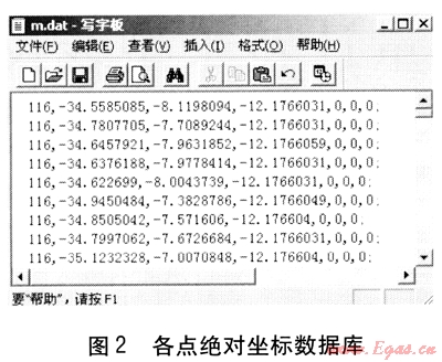 獲取點云數(shù)據(jù)后,對數(shù)據(jù)模型進行重構,包括點云處理和坐標系對齊等。為進一步進行數(shù)據(jù)處理,將測量所得的各點絕對坐標分段導入數(shù)據(jù)庫,數(shù)據(jù)庫格式便于MATLAB軟件調用即可,各點絕對坐標數(shù)據(jù)庫見圖2。