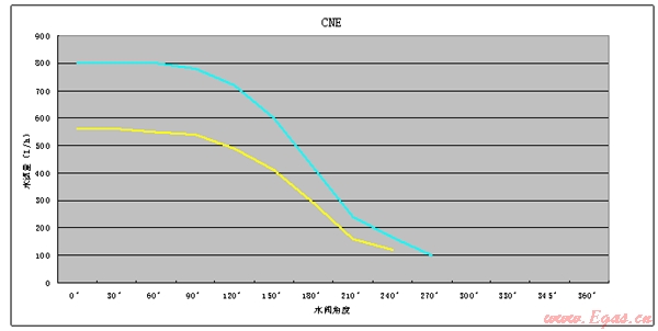 4、水調節特性:(黃線為0.1Mpa水壓、藍線為0.2Mpa水壓 )