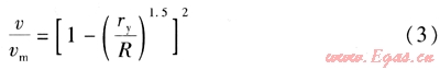 式中v——射流橫截面上距離軸心為ry的點處的速度,m/s