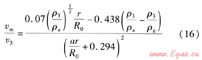 橫截面上距離軸心為ry處的混合氣體密度ρ的計算公式為: