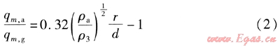 泄漏口處燃氣密度與空氣密度相差較大,屬于非定密度體系射流[3]。當燃氣射流噴入空氣中時,由于內摩擦力的作用,燃氣射流與空氣發生動量交換,周圍空氣被卷吸進來,根據動量守恒可以推導出非定密度體系中,燃氣引射進來的空氣質量流量,見式(2)[3]。
