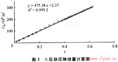 綜上所述,實例氣藏A區塊有來自其他區塊的補給量約70×108m3,與其相鄰的B區塊則可能已被動用,即B區儲量產生了外溢,目前以150×104m3/d左右的速度向A區塊補給,對于已動用的B區塊則可考慮少打井同時利用剩余地層壓力差由A區塊來動用B區塊的儲量。這樣可以大大節約投資成本,提高經濟效益。