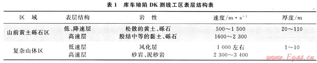 通過小折射、微測井等多種表層調查方法,已基本搞清了本工區內表層結構的特點(表1)。準確的表層模型建立之后,逐點設計鉆井深度,保證震源在高速層中激發,增強激發效果。