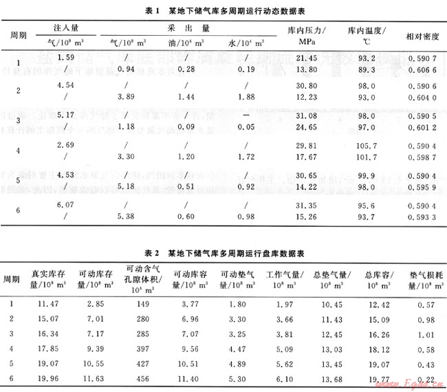 根據新建的盤庫數學模型,采用迭代算法,利用某地下儲氣庫多周期運行注采動態系列數據,連續計算了各周期末的盤庫技術指標,見表2。