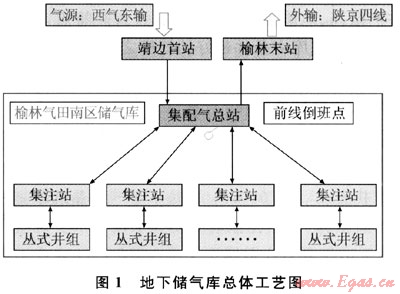 經過多方案的比較和經濟技術的對比,長慶氣區榆林南區地下儲氣庫初步擬采用的總體工藝如圖1所示。