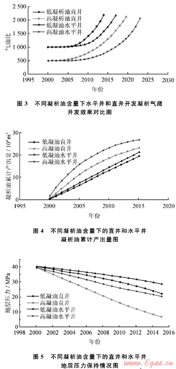1.3.1不同凝析油含量下水平井和直井開發凝析氣藏開發效果