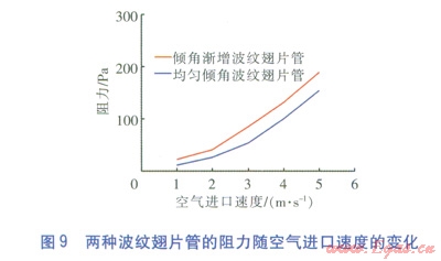 ②增大空氣進口速度可以提高波紋翅片管的換熱量,但阻力也隨之增大,應根據允許的空氣壓力降選擇合適的空氣進口速度。